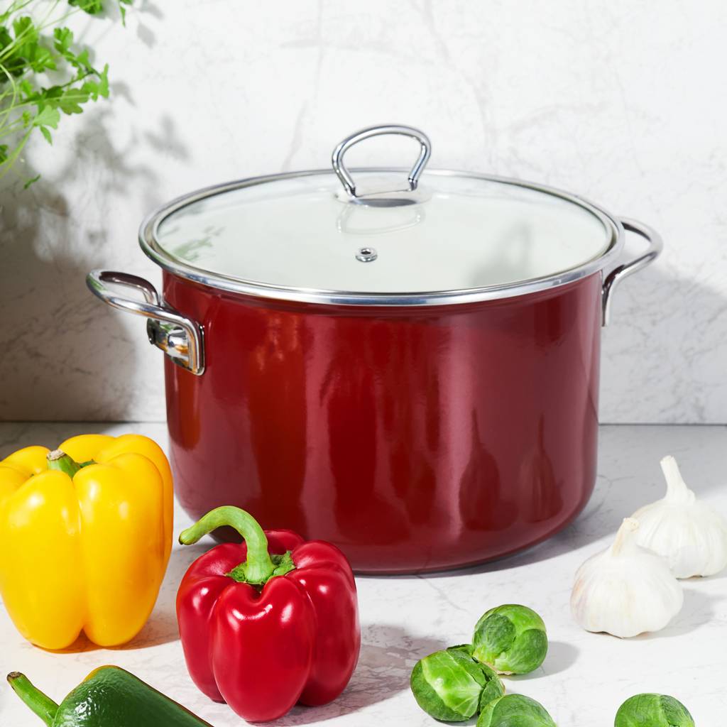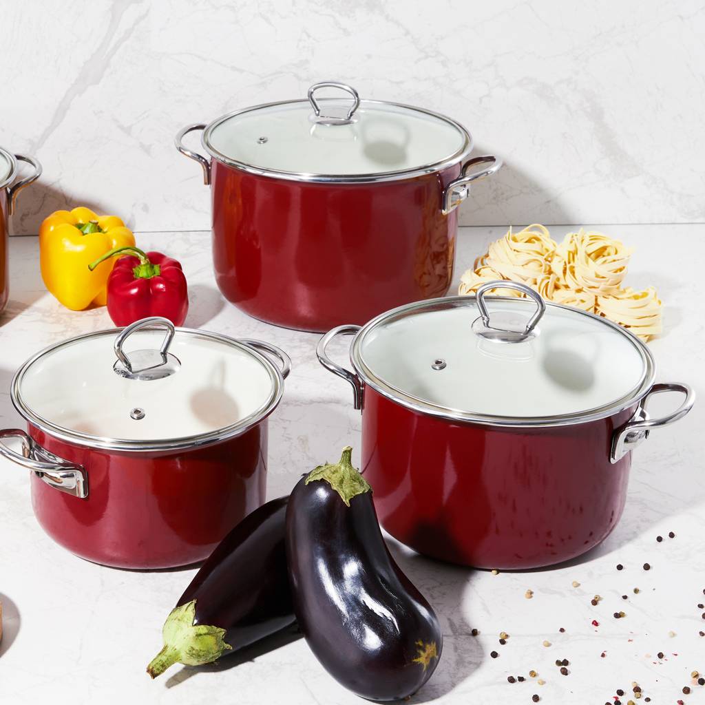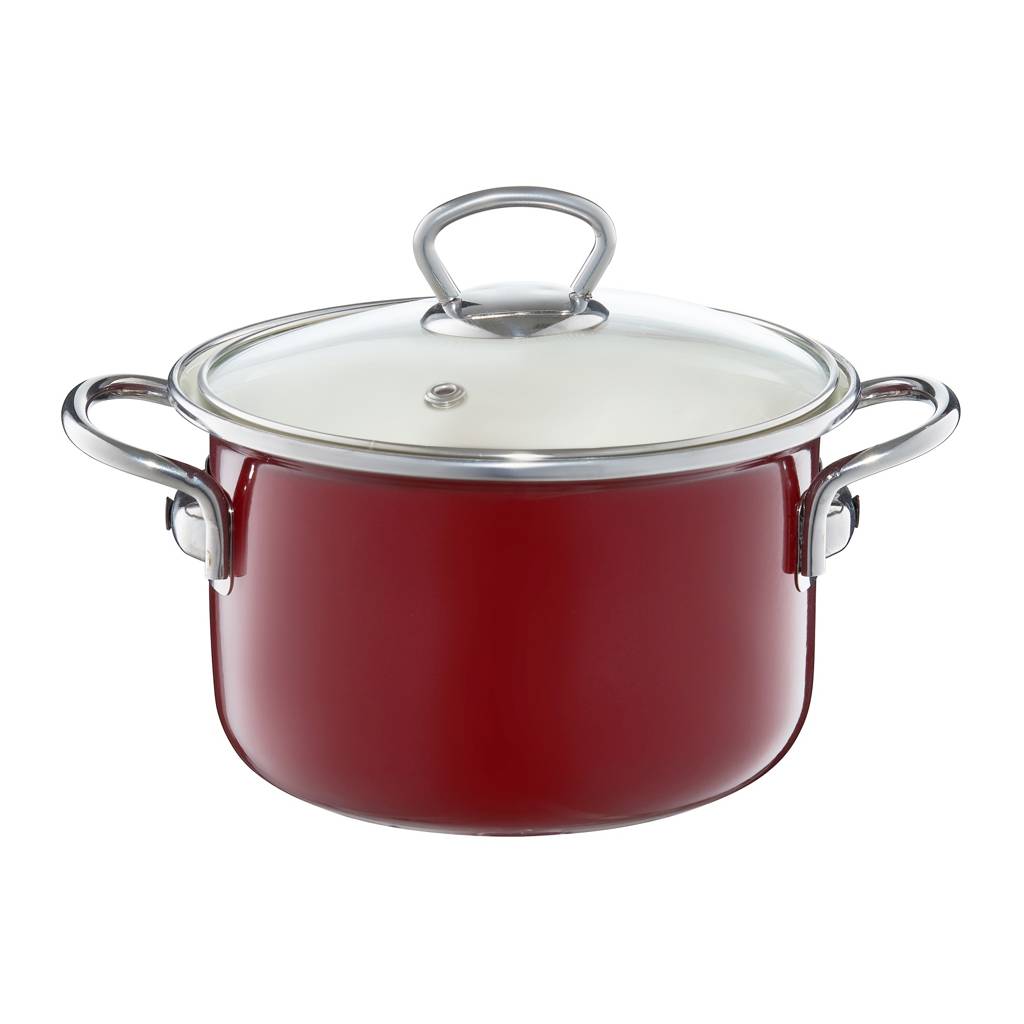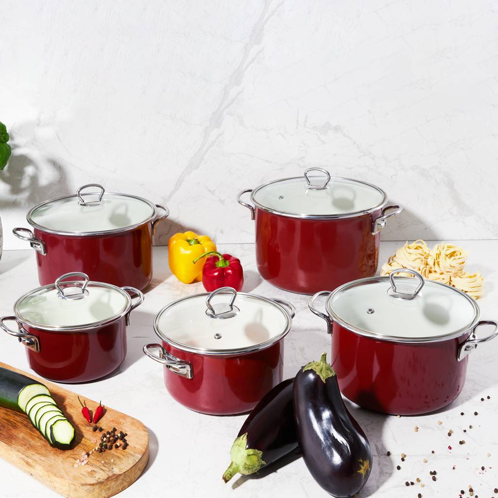 Realizzata in acciaio rivestito di smalto, la pentola unisce la durata alla sicurezza nel contatto con gli alimenti. La superficie non assorbe odori né coloranti, il che facilita la pulizia e il mantenimento della freschezza dei piatti. La struttura favorisce un riscaldamento uniforme e il coperchio coordinato aiuta a mantenere le condizioni di cottura adeguate. Il bordo rinforzato aumenta la resistenza ai danni, il che si traduce in una maggiore durata del recipiente.